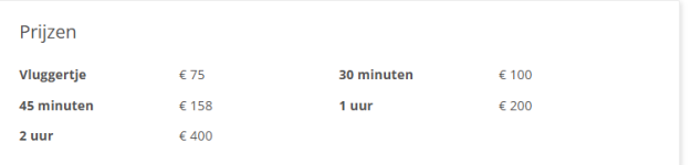 Bij een 2 uur date krijg je korting terwijl je bij een halfuur date genaaid word en 150 euro moet betalen omgerekend naar 2 uur seks 600 euro. Ik snap sommige mannen echt niet dat ze zich zo laten oplichten. Het word echt tijd om deze dames links te laten liggen zodat ze weer normale prijzen gaan vragen, deze dames worden zo letterlijk lachend rijk.350,- voor twee uur is een leuke prijs... als ik haar daarvoor helemaal voor mij alleen heb natuurlijk!